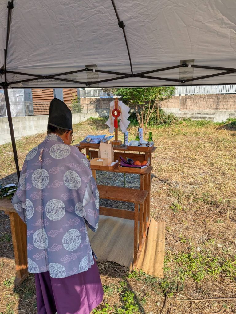 建物などの建設工事を始める前に、土地の神様に敬意を表し、工事の安全と完成を祈願する儀式に参加いたしました。